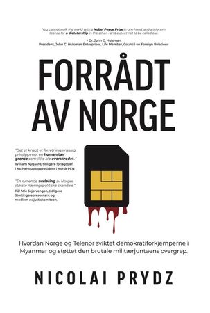 Denne thrilleren av en bok forteller hvordan norske myndigheter dro til et av verdens fattigste land for å sikre at Telenor, med den norske stat som største eier, fikk telekonsesjon og tilgang til 55 millioner nye abonnenter. I Myanmar ble de møtt med åpne armer av militærjuntaens generaler som tilsynelatende ønsket å skifte fra diktatur til demokratisk styresett. Slik strømmet milliardene fra Norge til et av verdens aller verste diktaturer. Forfatter Nicolai Prydz tar deg med bak kulissene i en av Norges største stats- og næringslivsskandaler. Gjennom unike innsikter og førstehåndsberetninger avslører han hvordan Telenor, med myndighetenes støtte, brøt med alle våre idealer og forrådte demokratiforkjemperne i Myanmar. Dette er historien om hvordan Telenors kundedata ble et farlig redskap i juntaens jakt på demokratiforkjempere og som resulterte i en bølge av arrestasjoner, tortur og drap. Forrådt av Norge avslører hvordan et norsk statseid selskap endte opp med å bidra til tragedien, og hvordan grådighet og økonomiske mål gikk foran hensynet til menneskeliv.